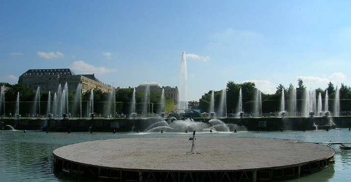 Il Bacino di Nettuno a Versailles Il più vasto Bacino di Versailles, è stato creato da Mansart e da Le Notre fra il 1679 e il 1684; tuttavia la decorazione definitiva si manifesterà solo sotto il Regno di Luigi XV°; si tratta di una decorazione posta sotto un muro di marmo, rifatto nel 1734, rappresentante gruppi in piombo: al centro si trovano Nettuno e Anfitrite, opera di Lambert-Sigisbert Adam, a sinistra è collocato Proteo, opera di Bouchardon, mentre a destra è stato posto il Dio Oceano, opera di Jean-Baptiste Lemoine. Sono presenti anche dei Dragoni marini, guidati da putti. 22 sono i vasi di piombo posti sulle estremità del muro suddetto. Sono presenti 99 Getti d'acqua, situati sia sulle statue che sui vasi, che creano uno spettacolo sorprendente durante sia i Grandi Giochi d'Acqua (si attivano durante il giorno come gran finale dello Spettacolo idrico) sia come scenografia agli spettacoli meravigliosi notturni pirotecnici, dove appunto luci, getti d'acqua, e fuochi d'artificio cercano di ricreare le feste notturne Reali. Indimenticabile lo spettacolo pirotecnico eseguito nel 2001 realizzato da Jean-Eric Ougier, intitolato "L'ARTISTE ROI". Lo spettacolo del 2001 era incentrato su arti ed artisti che hanno fatto sorgere il Palazzo di Versailles e il suo Parco, riuniti e istigati dalla Volontà di Luigi XIV°, che dall'adolescenza sino alla fine del suo Regno non andrà mai a cessare di fare del suo dominio il cantiere dell'OTTAVA MERAVIGLIA. Dall'inizio alla fine dello spettacolo del 2001, le muse e gli artisti che esse ispirano - Lully, Le Brun, Le Notre, Moliere ... sono venuti dinnanzi al Re dando corpo ai suoi desideri. Ognuno fu autore di un episodio della epopea Artistica di Versailles. Danze, Musiche, Arti dei Giardini, Sculture, Teatro, Opera, Pittura, Architettura: mano a mano, tutte queste Arti, dalle più effimere a quelle più durevoli, si sono susseguite servendo la Gloria del Re: una celebrazione di lui e delle Arti: Luigi XIV° in questo spettacolo fu direttore d'orchestra, fontaniere, artificiere, architetto, danzatore, e attore organizzando una festa Grandiosa per un piacere immenso. Serie di Foto e filmati Dettagli