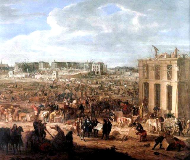 Questo palesa che i militari, manodopera malleabile ed a buon mercato, sono numerosi nei cantieri. Quello dell'Eure conta così 22.000 soldati su 300.000 operai. Pagati un terzo meno dei loro colleghi civili, essi si stancavano nei lavori più penosi, sterramenti, trasporti di terra, prosciugamento di paludi... Ma le condizioni di lavoro sono spaventose per tutti i mestieri sui quali, per un indubitabile effetto domino, rimbalza la pressione esercitata dall'impaziente Monarca sul suo sovrintendente. Il 6 Maggio 1682, il Re si installa ufficialmente in un castello brulicante di pittori e di muratori. La Corte pulisce letteralmente i gessi.