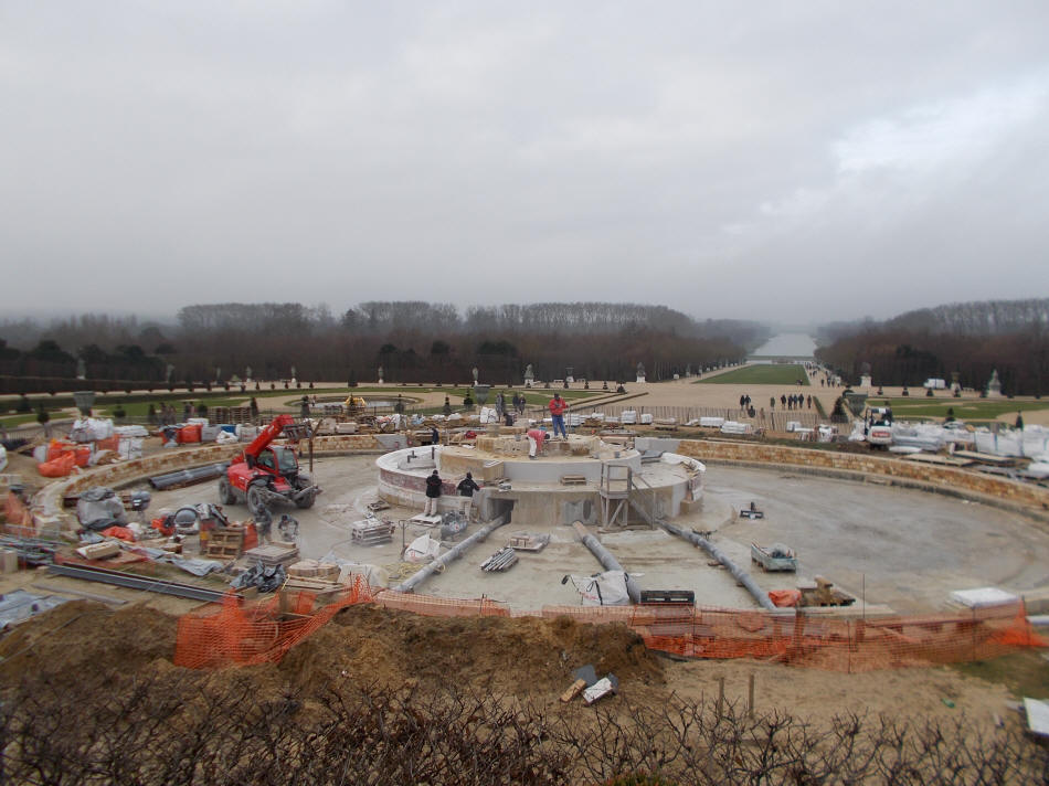 La situazione invece della fontana principale, il più bel regalo che un figlio poteva fare ad una madre in perpetuo nei secoli, tale fu l'intento di Luigi XIV per sua madre, la Regina Anna, è ancora in evoluzione: sicuramente pronta per la primavera del 2015, e sarà di certo una meraviglia pensando ai marmi, accompagnati dall'oro vivo delle statue colpite dai raggi del sole, in sincronia del prisma cromatico generato dalla luce dell'astro mentre colpisce i diamanti d'acqua spruzzati dai getti d'acqua.