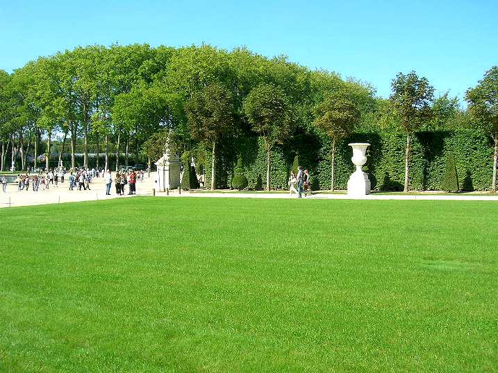Il Viale Reale (noto anche come Tappeto Verde) Si tratta di un lungo spazio erboso rettangolare che congiunge la Fontana di Latona a quella del Carro di Apollo: sono 335 metri in lunghezza e 64 metri in larghezza. Esso scende con pendenza verso ovest ed è fiancheggiato da statue e vasi, e costituisce con la sua estensione parte essenziale del Grande Asse dei Giardini. Esso era costeggiato a destra ed a sinistra di enormi e frondosi alberi, che purtroppo con la tempesta di fine Dicembre 1999, sono stati sradicati: attualmente sono stati sostituiti da alberi più giovani. Dodici statue alternate da dodici Vasi, congiungono le due Fontane sopra citate, simboleggiando con la prima la Nascita del giorno, e la seconda la corsa del Sole sulla volta Celeste. A cura di Arsace da Versailles |
