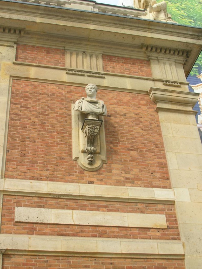 Nella Corte di Marmo, nella facciata della Reggia, volta verso Versailles città, sono presenti sculture (busti antichi) eseguite dagli artisti Pierre Chesneau, Henri Legrand e Antoine Poissant.