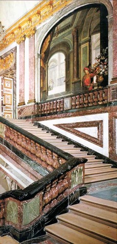 Una decorazione geometrica si trova nello Scalone della Regina, detto anche Scalone di Marmo, che costituiva il Pendant allo Scalone degli Ambasciatori, ora mancante poichè distrutto nel 1752.