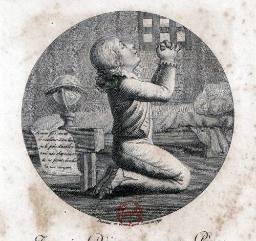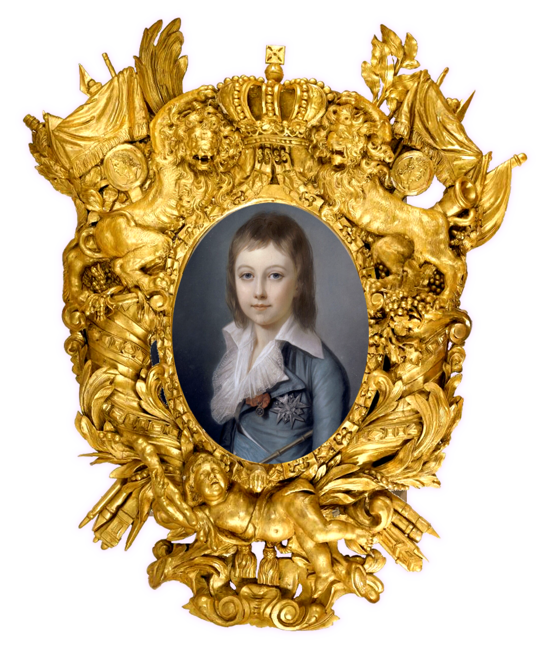 Qui sopra Louis-Charles assieme a Maria Teresa “Amorino” come lo chiamava Maria Antonietta, fu separato da lei, dalla sorella Maria Teresa e da sua zia paterna Madame Elisabeth, e visse con suo padre. Durante il processo di Luigi XVI, il Delfino fu affidato a sua madre. Gli addii al Re, la veglia della sua esecuzione, che fu alle ore 10.22 del mattino del 20 Gennaio 1793, furono uno strazio.