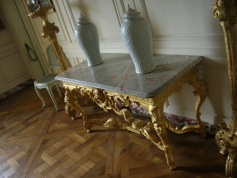 Letto di Madame de Hausset Si passa in seguito procedendo nell'appartamento, nel Grand cabinet, che fu sino al 1745 la camera della Marchesa. Fu infatti verso il 1747-1748 che divenne il Grand cabinet, ossia un salone di ricevimento. Tale cabinet dà accesso al Petit cabinet (proprio sopra il Salone di Apollo) che conduce direttamente all'Anticamera.