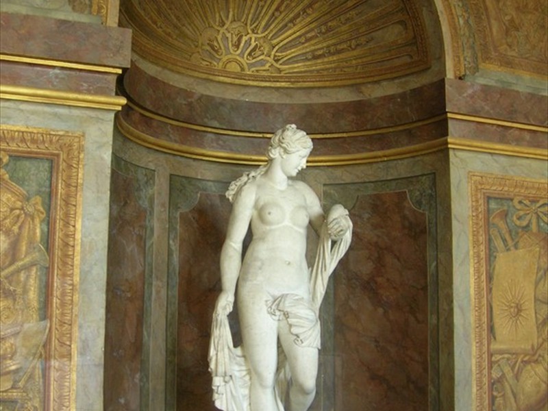 Il Letto in alcova della Marchesa nella sua camera La camera da letto è fu realizzata nel 1748 dall'architetto Gabriel: il letto è posto in una alcova, circondato da due piccoli gabinetti che permettono di giungere al letto da dietro.
