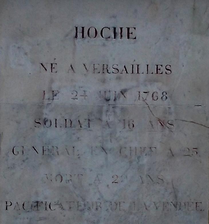 E’ su questa piazza che fu installata una ghigliottina del dipartimento durante il passaggio a Versailles durante la Rivoluzione. Ma si contarono solo 7 esecuzioni capitali in questa piazza. Al n° 6 di Place Hoche si trova un albergo con l’insegna “La Belle Image”: è qui che il 1° Febbraio 1785, la contessa de La Motte diede l’appuntamento al Cardinale de Rohan per farsi consegnare il famoso “Collier de la Reine”.