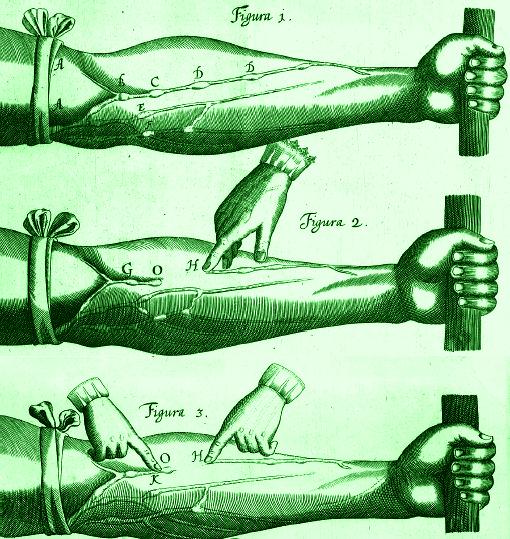 Il Re interverrà ugualmente nel violento dibattito che ha opposto per dei decenni la facoltà di Parigi ai partigiani delle teorie dell’inglese William Harvey sulla circolazione del sangue. Andando contro agli insegnamenti degli antichi, William Harvey dimostra nel 1628 che il cuore è una pompa: spiega che il sangue entra nel cuore attraverso la vena cava per riuscirne attraverso l’arteria principale. Luigi XIV finirà per prendere atto della cosa sposando la tesi di Harvey, ordinando, nel 1673, l’insegnamento delle sue tesi al Giardino del Re, l’antico Giardino delle piante e del Museo di storia naturale. Al di là del ruolo di iniziatore o di modello, il potere Reale, soprattutto nel XVIII secolo, inizia a mettere a posto ciò che si può chiamare gli albori di una politica di salute pubblica. Le condizioni sono allora riunite: “Come l’influenza della religione si allenta, si può alla fine interessarsi ai corpi. Appare peraltro l’idea che lo sviluppo delle scienze è una specie di gloria per la Nazione. Infine, i Re considerarono ormai la popolazione come una ricchezza del Paese” come afferma Catriona Seth. Le guerre hanno necessità di una grande quantità di soldati, ed i Re, a partire dal XVIII secolo, hanno percepito il vantaggio che rappresenta una sana popolazione a livello geopolitico. Peraltro, le teorie mercantilistiche si sviluppano, mettendo avanti l’importanza della coltivazione del suolo, e questo esigeva un gran numero di braccia.