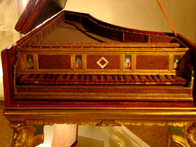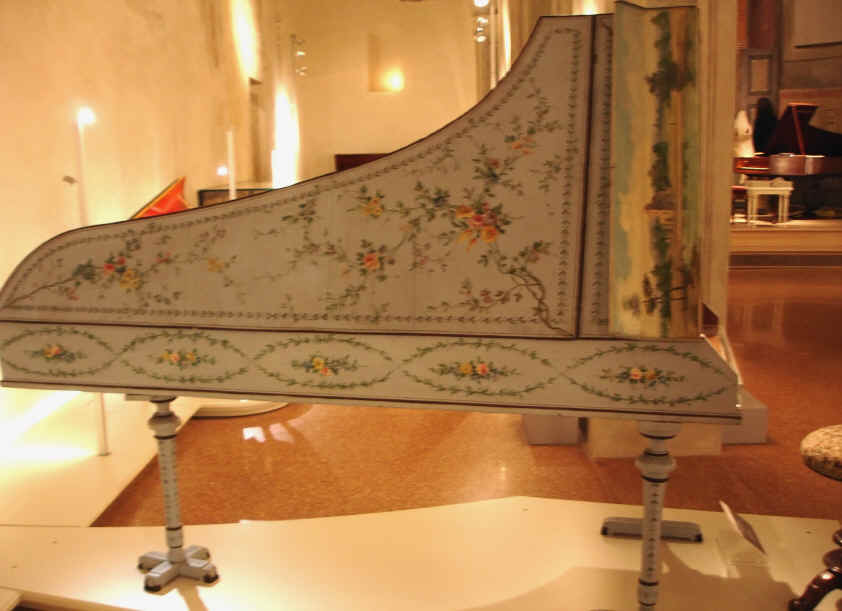 Molti di questi strumenti sono anche impreziositi da pitture di paesaggi e scene mitologiche. Tra le scuole italiane primeggiano quella bolognese e quella napoletana, ma vi sono anche esemplari di scuola romana, veneziana e fiorentina. I più importanti strumenti transalpini provengono da Parigi, da Londra, da Amsterdam. Le più importanti rarità sono costituite da: - il cembalo a penne e martelletti di Giovanni Ferrini (1746) - il cembalo pieghevole del primo settecento, di cui ve ne sono solo 4 al mondo e Farinelli ne possedeva 2.