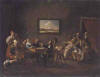 Haym è al cembalo, Nicolino è in piedi che canta, Pepusch è il primo a destra